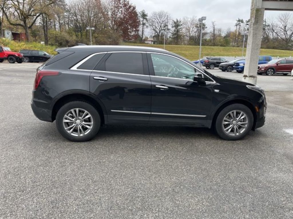 Cadillac Certified Pre-Owned Certified, 170 Amp Alternator, 2-Way Power Driver Lumbar Control Seat Adjuster, 2-Way Power Passenger Lumbar Control Seat Adjuster, 3.47 Axle Ratio, 4-Wheel Disc Brakes, 4-Wheel Independent Suspension, 8 Speakers, ABS brakes, Air Conditioning, All-Weather Floor Mats, All-Weather Integrated Cargo Liner (LPO), Alloy wheels, AM/FM radio: SiriusXM, Apple CarPlay/Android Auto, Audio memory, Auto High-beam Headlights, Auto-dimming door mirrors, Auto-dimming Rear-View mirror, Automatic Dual-Zone Climate Control, Automatic Emergency Braking, Automatic Stop/Start w/Disable, Automatic temperature control, Bodyside moldings, Bose Performance Series 14 Speakers System, Bose Premium 8-Speaker Audio System Feature, Brake assist, Bumpers: body-color, Compass, Delay-off headlights, Driver door bin, Driver vanity mirror, Dual Driver Info Center Display Gauge Cluster, Dual front impact airbags, Dual front side impact airbags, Electronic Stability Control, Emergency communication system: OnStar and Cadillac connected services capable, Four wheel independent suspension, Front & Rear Park Assist, Front anti-roll bar, Front Bucket Seats, Front Center Armrest, Front dual zone A/C, Front reading lights, Fully automatic headlights, Garage door transmitter, HD Rear Vision Camera, Heated door mirrors, Heated Driver & Front Passenger Seats, Heated front seats, Heated steering wheel, Illuminated entry, Inside Rear-View Auto-Dimming Mirror, Interior Protection Package (LPO), Knee airbag, Lateral Mesh Cargo Net, Leather Seating Surfaces w/Mini Perforated Inserts, Leather steering wheel, Light Pipes in Doors Lighting Accent, Low tire pressure warning, Memory seat, Not Equipped w/Front & Rear Park Assist, Occupant sensing airbag, Outside temperature display, Overhead airbag, Overhead console, Panic alarm, Passenger door bin, Passenger vanity mirror, Power door mirrors, Power driver seat, Power Liftgate, Power moonroof: UltraView, Power passenger seat, Power steering, Power windows, Premium Luxury Package 1SD, Radio data system, Radio: Cadillac User Experience AM/FM Stereo, Radio: Cadillac User Experience w/Embedded Nav, Rain sensing wipers, Rear anti-roll bar, Rear reading lights, Rear seat center armrest, Rear window defroster, Rear window wiper, Remote keyless entry, Road Emergency Tool Kit, Security system, SiriusXM w/360L, Speed control, Speed-sensing steering, Split folding rear seat, Spoiler, Steering wheel memory, Steering wheel mounted audio controls, Tachometer, Teen Driver, Telescoping steering wheel, Tilt steering wheel, Traction control, Trip computer, Turn signal indicator mirrors, Variably intermittent wipers, Voltmeter, Wheels: 18" 6-Split Spoke Alloy. Clean CARFAX. CARFAX One-Owner. Stellar Black Metallic 2022 Cadillac XT5 Premium Luxury AWD 9-Speed Automatic 2.0L Turbocharged
