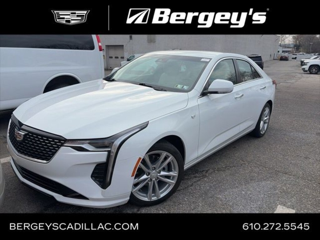 Cadillac Certified Pre-Owned Certified, 4-Wheel Disc Brakes, 8 Speakers, ABS brakes, Air Conditioning, Alloy wheels, AM/FM radio: SiriusXM, Anti-whiplash front head restraints, Apple CarPlay/Android Auto, Auto High-beam Headlights, Automatic Stop/Start w/Disable, Automatic temperature control, Brake assist, Bumpers: body-color, Compass, Delay-off headlights, Driver 2-Way Power Lumbar Seat Adjuster, Driver door bin, Driver vanity mirror, Dual front impact airbags, Dual front side impact airbags, Electronic Stability Control, Emergency communication system: OnStar and Cadillac connected services capable, Exterior Parking Camera Rear, Four wheel independent suspension, Front anti-roll bar, Front Bucket Seats, Front Center Armrest, Front dual zone A/C, Front reading lights, Fully automatic headlights, HD Radio, Heated door mirrors, Illuminated entry, Inteluxe Seats, Knee airbag, Leather Shift Knob, Leather steering wheel, Low tire pressure warning, Occupant sensing airbag, Outside temperature display, Overhead airbag, Overhead console, Panic alarm, Passenger door bin, Passenger vanity mirror, Power door mirrors, Power driver seat, Power passenger seat, Power steering, Power windows, Preferred Equipment Group 1SB, Premium 8-Speaker Audio System Feature, Radio data system, Radio: Cadillac User Experience, Rear anti-roll bar, Rear reading lights, Rear seat center armrest, Rear window defroster, Remote keyless entry, SiriusXM w/360L, Speed control, Speed-sensing steering, Split folding rear seat, Steering wheel mounted audio controls, Tachometer, Telescoping steering wheel, Tilt steering wheel, Traction control, Trip computer, Turn signal indicator mirrors, Variably intermittent wipers, Voltmeter, Wheels: 17" Alloy w/Bright Silver Finish. Clean CARFAX. CARFAX One-Owner. Summit White 2023 Cadillac CT4 Luxury RWD 8-Speed Automatic 2.0L Turbocharged
