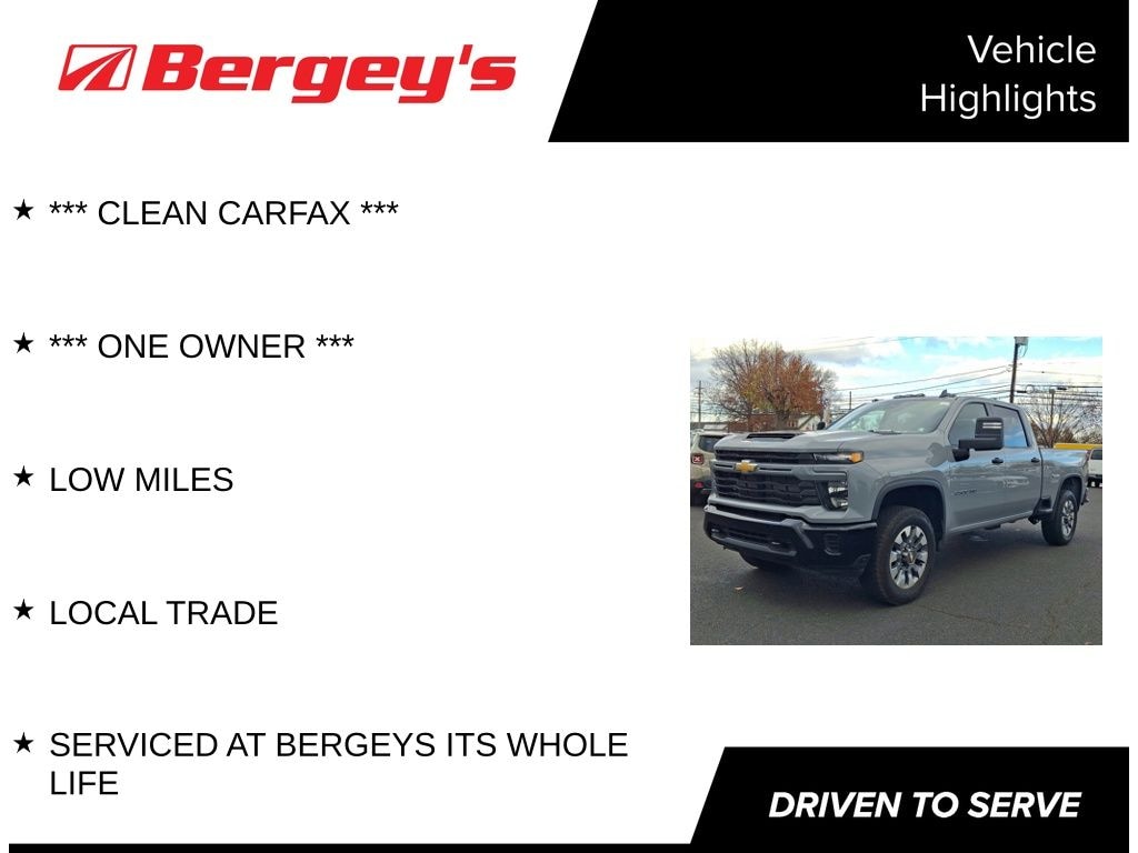 Get ready to power through every job in style with this 2024 Chevrolet Silverado 2500HD Custom, available now at Bergeys Chevrolet in Colmar, PA! This heavy-duty Chevy truck combines serious strength with bold design perfect for drivers in Doylestown, Lansdale, Sellersville, and across Bucks County who need capability without compromise. Under the hood, the Silverado 2500HD Custom delivers impressive towing and hauling power, while its rugged build, 20-inch wheels, and advanced technology make every drive smooth, safe, and connected. Whether you're towing a trailer, tackling tough terrain, or just cruising through town, this 2024 Chevrolet Silverado 2500HD Custom for sale near Sellersville, PA proves that hard work can look good too. Stop by Bergeys Chevrolet in Colmar, PA today to test drive this powerhouse and see why Chevy trucks are built to handle it all!