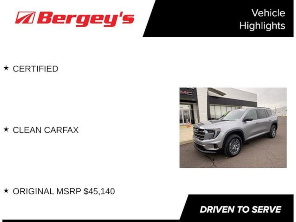 With its exceptional features, impressive performance, and unparalleled peace of mind, this 2025 GMC Acadia Elevation is an exceptional value. We invite you to experience the difference for yourself and schedule a test drive today.