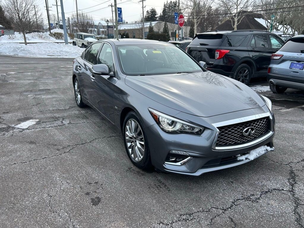 You don't need to compromise luxury for performance or versatility with this Certified Infiniti Q50 3.0t Luxe AWD. This Low Mileage, local trade-in has a clean CarFax. The smooth 3.0L V6 twin turbocharged engine generates 300 HP and 295 lb-ft of torque and is mated to an Intelligent AWD system. Stunning polished 18 inch alloy wheels add distinctive style.