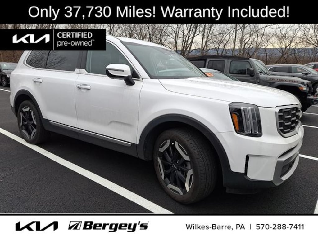 Certified. Glacial White Pearl 2023 Kia Telluride S AWD 8-Speed Automatic 3.8L V6 DGI DOHC Dual CVVT 1-OWNER, CERTIFIED, FRESH OIL CHANGE, LOCALLY OWNED, NEW PA INSPECTION, ORIGINALLY BOUGHT AT BERGEYS, PROFESSIONAL DETAIL, SERVICED AT BERGEYS ITS WHOLE LIFE.