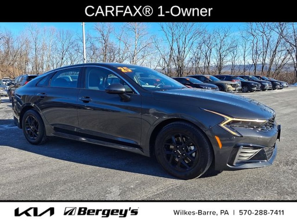 Certified. Interstellar Gray 2025 Kia K5 LXS FWD 8-Speed Automatic I4 1-OWNER, CERTIFIED, CLEAN CARFAX, FRESH OIL CHANGE, INCREDIBLE SERVICE HISTORY, NEW PA INSPECTION, PROFESSIONAL DETAIL.