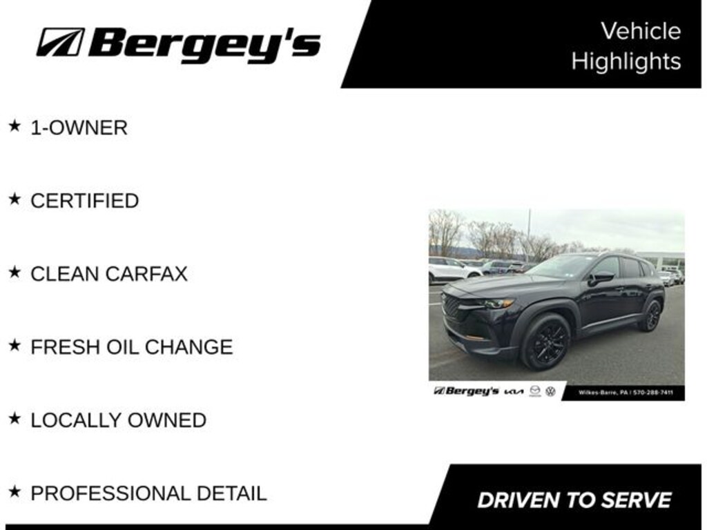 Certified. Jet Black Mica 2023 Mazda CX-50 2.5 S Preferred Plus Package AWD 6-Speed Automatic SKYACTIV® 2.5L 4-Cylinder DOHC 16V 1-OWNER, CERTIFIED, CLEAN CARFAX, FRESH OIL CHANGE, LOCALLY OWNED, PROFESSIONAL DETAIL.