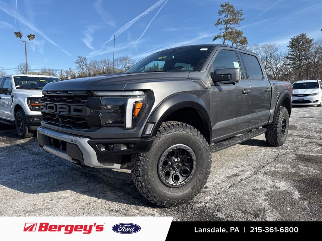 Gray Metallic 2025 Ford F-150 Raptor 4WD 10-Speed Automatic 3.5L V6 EcoBoost 4WD, Carbon Fiber Interior Appliques, Dual Valve Shocks, Equipment Group 802A Raptor 37, Modular Front Bumper, Radio: B&O Unleashed Sound System by Bang & Olufsen, RECARO Alcantara Suede Front Seats, SYNC 4 w/Enhanced Voice Recognition, Wheels: Raptor 37 Unique 17" Cast Aluminum.