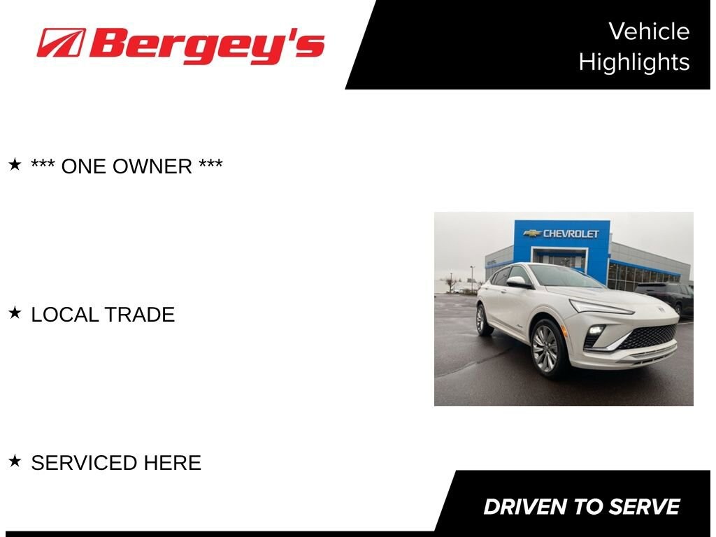 Elevate your driving experience with the exceptional 2025 Buick Envista Avenir. This stunning off-white SUV boasts a remarkable blend of style, technology, and performance, making it the perfect companion for your adventures.- One Owner- Local Trade- Serviced HereThe Envista Avenir is equipped with an impressive array of advanced features, including the Avenir Advanced Safety Package, which provides adaptive cruise control, lane change alert with side blind zone alert, rear cross-traffic alert, and more. The power, tilt-sliding moonroof with a manual sunshade adds an extra touch of luxury and natural light to your journeys.Powered by the efficient ECOTEC 1.2L Turbo engine and paired with a 6-speed automatic transmission, the Envista Avenir delivers an exceptional driving experience with an EPA-estimated 28 city/32 highway MPG. This well-appointed SUV also offers a suite of premium amenities, such as heated front seats, a heated steering wheel, and a premium 6-speaker audio system.This Envista Avenir has been meticulously inspected and certified, ensuring you can drive with confidence. Our team of experts has thoroughly reviewed the vehicle's history and condition, and we're proud to offer it to you with the peace of mind that comes with our comprehensive certification process.Experience the perfect blend of style, technology, and performance with the 2025 Buick Envista Avenir. This exceptional SUV is waiting for you to take the wheel and discover its remarkable capabilities. Visit our showroom today and let us demonstrate how this Envista Avenir can enhance your driving experience.