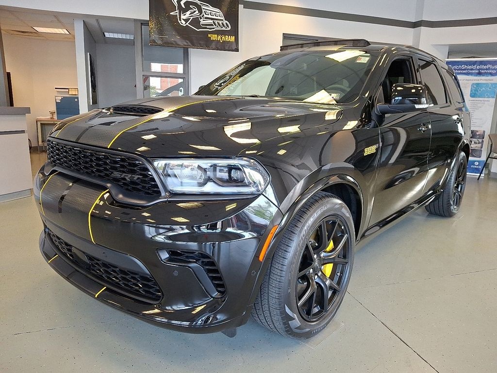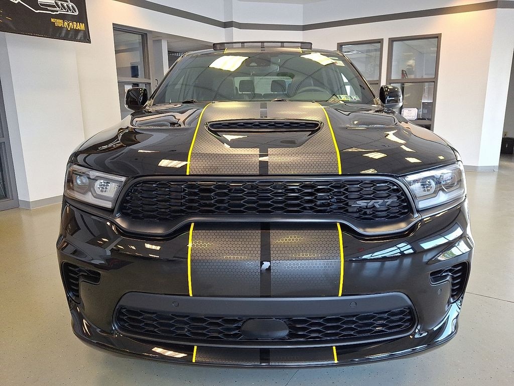 DB Black Crystal Clearcoat 4D Sport Utility 2024 Dodge 13/19 City/Highway MPG Durango SRT 392 AWD 8-Speed Automatic SRT HEMI 6.4L V8 MDS AWD, #6 Seat Foam Cushion, 19 harman/kardon Amplified Speakers w/Subwoofer, 2 Pc Brembo Front Rotor Brakes, 2nd Row Mini Console w/Cupholders, 392 Vinyl Fender Decal, 3rd Row Floor Mat & Mini Console, 7 & 4 Pin Wiring Harness, 825 Watt Amplifier, Adaptive Cruise Control w/Stop, Advanced Brake Assist, Black & Yellow Dual Stripe, Black Roof Rails, Blind Spot w/Trailer Detection, Class IV Receiver Hitch, Eclipse Black Exhaust Tips, Forged Carbon Fiber Interior Accents, Full Speed Forward Collision Warning Plus, Gray Metallic Badges, Integrated Roof Rail Crossbars, Lane Departure Warning Plus, Leather/Suede Seats w/Yellow Stitch, Leather/Suede Wrapped Steering Wheel, Navigation system: TomTom, ParkView Rear Back-Up Camera, Power Liftgate, Power Sunroof, Premium Instrument Panel, Quick Order Package 29Q SRT 392 AlcHEMI, Satin Black Dodge Tail Lamp Badge, Suede Headliner, Trailer Brake Control, Wheels: 20" x 10" Forged Y-Spoke Satin Black, Yellow & Silver Interior Accent Stitching, Yellow SRT Brembo Brake Calipers.