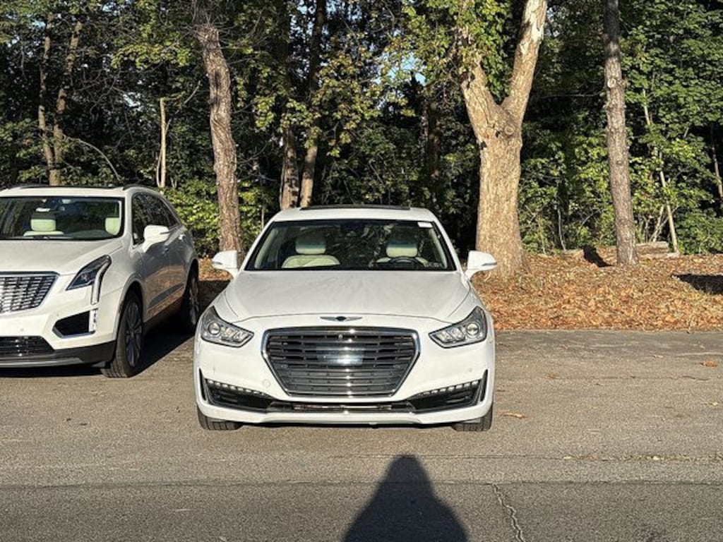 17 Speakers, 4-Wheel Disc Brakes, ABS brakes, Adaptive suspension, Air Conditioning, Alloy wheels, AM/FM radio: SiriusXM, Auto High-beam Headlights, Auto tilt-away steering wheel, Auto-dimming door mirrors, Auto-dimming Rear-View mirror, Auto-leveling suspension, Automatic temperature control, Bodyside moldings, Brake assist, Bumpers: body-color, Compass, Delay-off headlights, Door auto-latch, Driver door bin, Driver vanity mirror, Dual front impact airbags, Dual front side impact airbags, Electronic Stability Control, Emergency communication system: Genesis Connected Services, Exterior Parking Camera Rear, Four wheel independent suspension, Front anti-roll bar, Front Bucket Seats, Front Center Armrest, Front dual zone A/C, Front fog lights, Front reading lights, Fully automatic headlights, Garage door transmitter: HomeLink, Genuine wood dashboard insert, Genuine wood door panel insert, Head restraints memory, Heads-Up Display, Heated & Vented Front Bucket Seats w/Memory, Heated door mirrors, Heated front seats, Heated rear seats, Heated steering wheel, Illuminated entry, Knee airbag, Leather Shift Knob, Leather steering wheel, Low tire pressure warning, Memory seat, Nappa Leather Seating Surfaces, Navigation System, Occupant sensing airbag, Option Group 01, Outside temperature display, Overhead airbag, Overhead console, Panic alarm, Passenger door bin, Passenger vanity mirror, Power adjustable front head restraints, Power adjustable rear head restraints, Power door mirrors, Power driver seat, Power moonroof, Power passenger seat, Power steering, Power windows, Radio: AM/FM/HD/SiriusXM/MP3 Audio System, Rain sensing wipers, Rear air conditioning, Rear anti-roll bar, Rear reading lights, Rear seat center armrest, Rear side impact airbag, Rear Window Blind, Rear window defroster, Remote keyless entry, Security system, Speed control, Speed-sensing steering, Speed-Sensitive Wipers, Steering wheel memory, Steering wheel mounted audio controls, Tachometer, Telescoping steering wheel, Tilt steering wheel, Traction control, Trip computer, Turn signal indicator mirrors, Variably intermittent wipers, Ventilated front seats, Ventilated rear seats, Wheels: 19 X 8.5J Fr & 19 X 9.5J Rr Chrome Alloy. White 2017 Genesis G90 5.0 Ultimate 8-Speed Automatic with SHIFTRONIC 5.0L V8 DGI DOHC 32V Dual CVVT