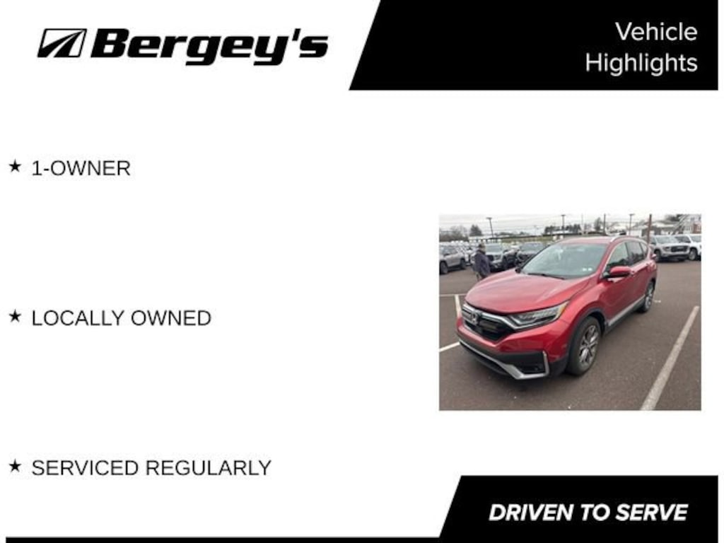 Discover the perfect blend of style, performance, and advanced technology in this meticulously maintained 2021 Honda CR-V Touring. With its sleek exterior, spacious interior, and impressive array of cutting-edge features, this CR-V is the ultimate companion for your adventures.- 1-OWNER- LOCALLY OWNED- SERVICED REGULARLY- Adaptive Cruise Control with Low-Speed Follow- Blind Spot Information (BSI) System- Collision Mitigation Braking System (CMBS) + FCW mitigation- Power Liftgate- Heated Steering Wheel- Leather-Wrapped Shift Knob- Honda Satellite-Linked Navigation SystemThis CR-V Touring is more than just a practical SUV it's a testament to Honda's commitment to innovation and craftsmanship. The 1.5L I4 DOHC 16V engine, paired with a smooth-shifting CVT and Intelligent All-Wheel Drive, delivers an exceptional driving experience, with an EPA-estimated 27 city / 32 highway mpg.Step inside and you'll be greeted by a spacious, well-appointed cabin that showcases Honda's attention to detail. Luxurious leather seating, a premium audio system, and a host of advanced technologies, including Apple CarPlay and Android Auto, ensure a truly connected and comfortable journey.Safety is paramount in the CR-V Touring, with a comprehensive suite of advanced driver-assistance features, including Collision Mitigation Braking System, Lane Keeping Assist, and Adaptive Cruise Control. You can drive with confidence, knowing that you and your loved ones are well-protected.Whether you're navigating the daily commute or embarking on a family road trip, this 2021 Honda CR-V Touring is the perfect companion. With its impressive capabilities, advanced technology, and impeccable condition, it's a vehicle that will exceed your expectations and provide years of reliable, enjoyable ownership.Experience the exceptional quality and versatility of the 2021 Honda CR-V Touring. Schedule a test drive today and discover how this remarkable SUV can enhance your driving experience.