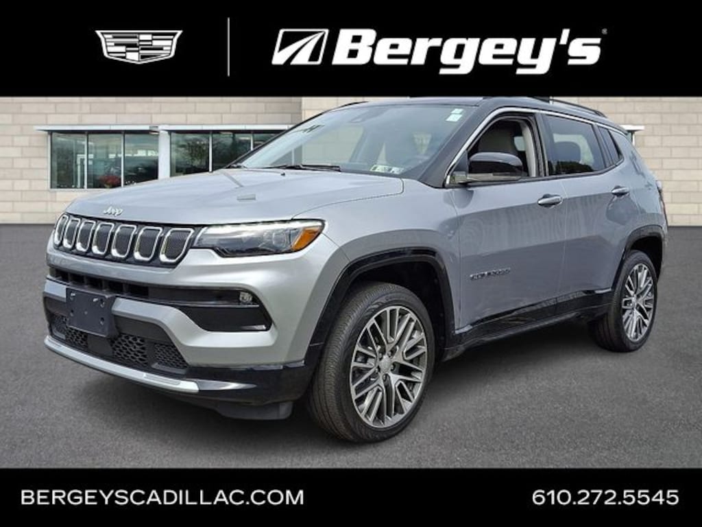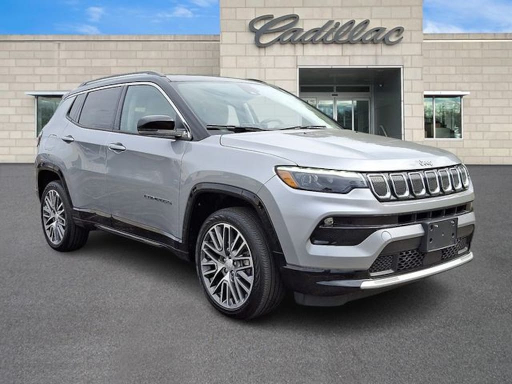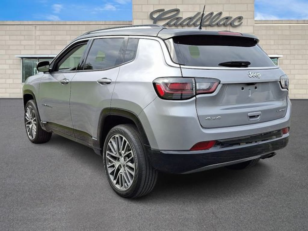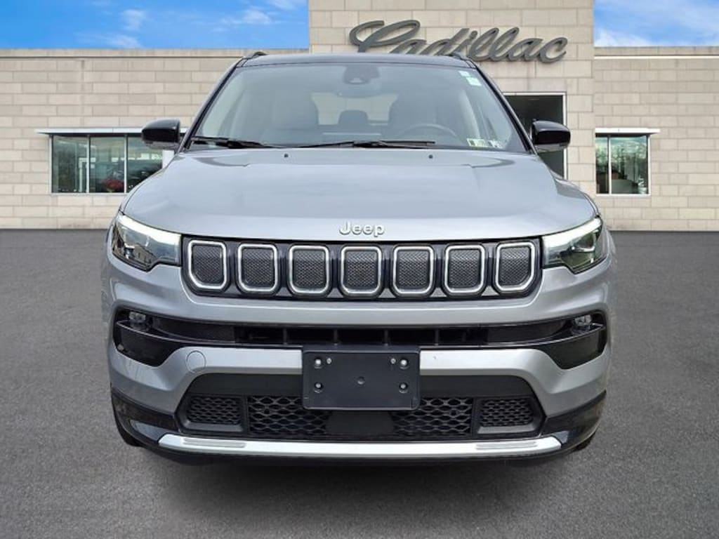 4WD, 10.1" Touchscreen Display, 115V Auxiliary Power Outlet, 2nd Row Heated Seats, 2nd Row USB Type A/C Charge Only, 3.73 Axle Ratio, 4-Wheel Disc Brakes, 4G LTE Wi-Fi Hot Spot, 6 Speakers, ABS brakes, Air Conditioning, Alexa Built-In, Alloy wheels, AM/FM radio: SiriusXM, Anti-whiplash front head restraints, Auto High-beam Headlights, Auto-dimming Rear-View mirror, Automatic temperature control, Brake assist, Bumpers: body-color, Cluster 10.25" TFT Color Display, Compass, Connected Travel & Traffic Services, Delay-off headlights, Disassociated Touchscreen Display, Driver door bin, Driver Seat Memory, Driver vanity mirror, Dual front impact airbags, Dual front side impact airbags, Electronic Stability Control, Elite Group, Emergency communication system: SiriusXM Guardian, Foot Activated Open 'N Go Liftgate, For Details, Visit DriveUconnect.com, For More Info, Call 800-643-2112, Four wheel independent suspension, Front anti-roll bar, Front Bucket Seats, Front Center Armrest w/Storage, Front dual zone A/C, Front fog lights, Front License Plate Bracket, Front reading lights, Fully automatic headlights, Global Telematics Box Module (TBM), Gloss Black Door Cladding, Gloss Black Exterior Mirrors, Gloss Black Exterior Sill, Gloss Black Fascias, Gloss Black Wheel Flares, GPS Navigation, HD Radio, Heated door mirrors, Heated front seats, Heated steering wheel, Illuminated entry, Integrated Voice Command w/Bluetooth, Knee airbag, Leather Shift Knob, Leather Trimmed Bucket Seats, LED Low/Highbeam Projector Headlamps, Low tire pressure warning, No Satellite Coverage HI/AK/PR/VI/GU, Occupant sensing airbag, Outside temperature display, Overhead airbag, Overhead console, Panic alarm, ParkView Rear Back-Up Camera, Passenger door bin, Passenger vanity mirror, Power 2-Way Passenger Lumbar Adjust, Power 8-Way Adjust Front Passenger Seat, Power door mirrors, Power driver seat, Power Liftgate, Power steering, Power windows, Premium Leather Trimmed Bucket Seats, Premium LED Fog Lamps, Premium Taillamps, Quick Order Package 2GG, Radio: Uconnect 5 Nav w/10.1" Display, Radio: Uconnect 5 w/10.1" Display, Rain sensing wipers, Rear anti-roll bar, Rear seat center armrest, Rear window defroster, Rear window wiper, Remote keyless entry, Reversible Carpet/Vinyl Cargo Mat, Roof rack: rails only, Security system, SiriusXM Guardian - Included Trial (B), SiriusXM Radio Service, SiriusXM Satellite Radio, SiriusXM w/360L, Speed control, Split folding rear seat, Spoiler, Steering wheel mounted audio controls, Tachometer, Telescoping steering wheel, Tilt steering wheel, Traction control, Trip computer, Turn signal indicator mirrors, Variably intermittent wipers, Ventilated Front Seats, Wheels: 18" x 7" Painted Diamond Cut Aluminum, Wheels: 19" x 7.5" Painted Diamond Cut Aluminum, 4WD. CARFAX One-Owner. Billet Silver Metallic Clearcoat 2022 Jeep Compass Limited 4WD 9-Speed 948TE Automatic 2.4L I4