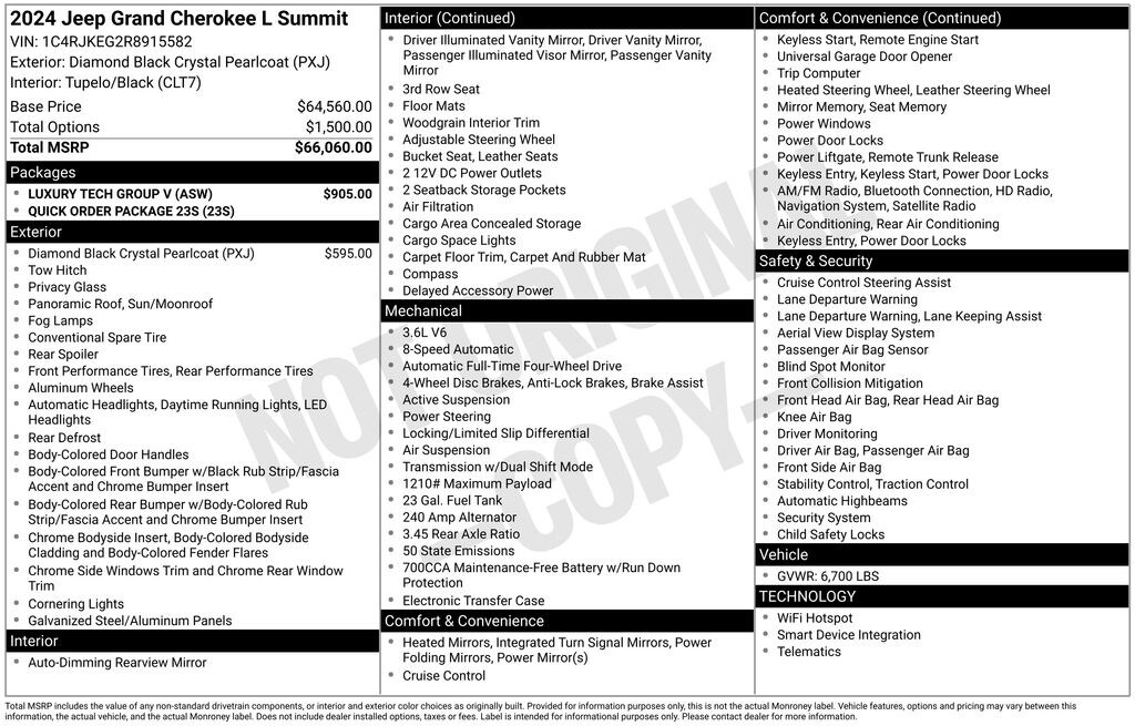 Recent Arrival! Clean CARFAX. Diamond Black Crystal Pearlcoat 2024 Jeep Grand Cherokee L Summit 4WD 8-Speed Automatic 3.6L V6 24V VVT