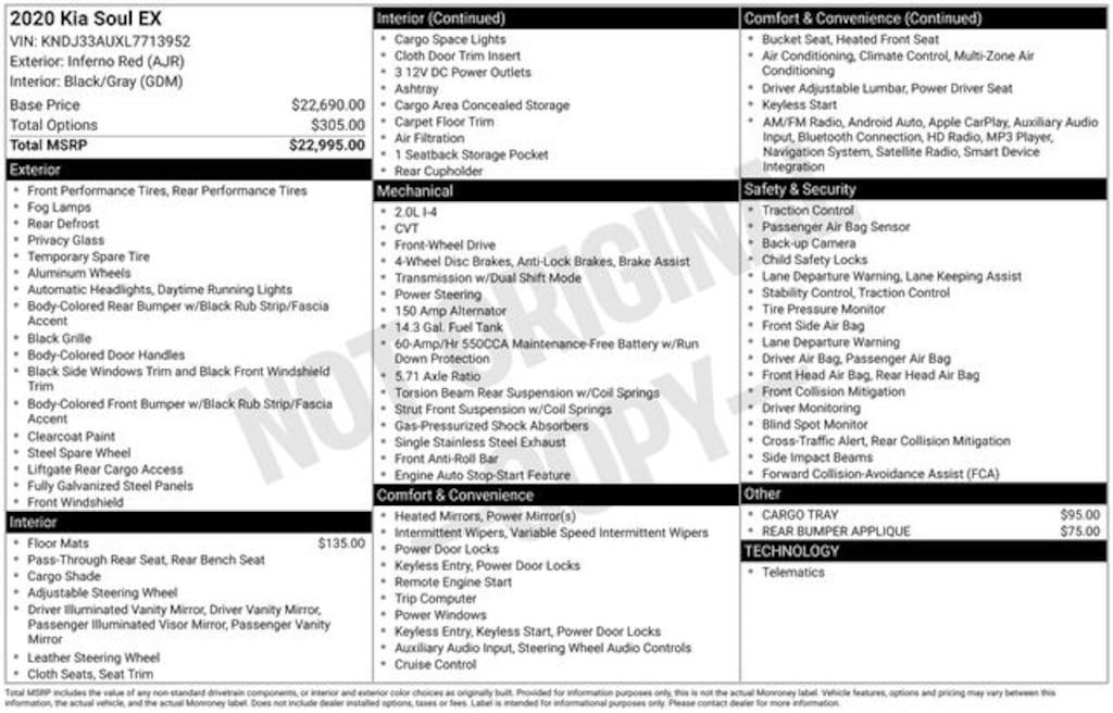 Inferno Red 2020 Kia Soul EX FWD CVT 2.0L I4 MPI DOHC 16V LEV3-SULEV30 147hp