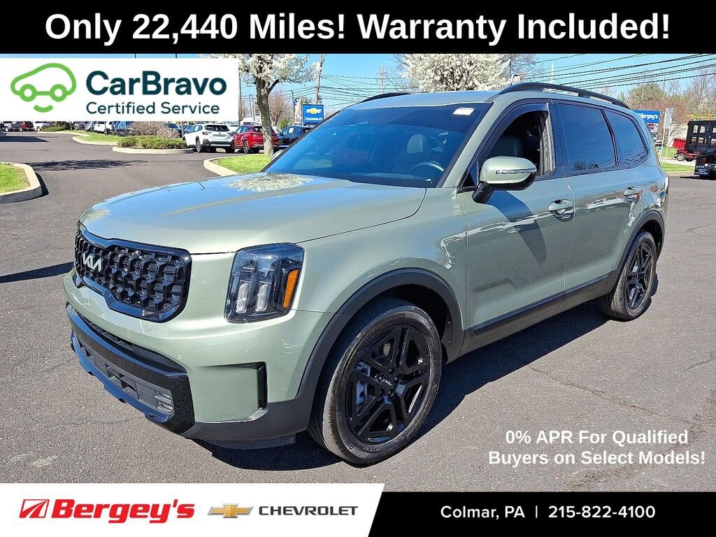 Discover the ultimate family-friendly SUV with the 2024 Kia Telluride SX X-Line. This exceptional vehicle combines unparalleled style, advanced technology, and exceptional versatility, making it the perfect choice for your next adventure.Boasting a stunning green exterior and a meticulously maintained interior, this one-owner Telluride is a true gem. Backed by a clean Carfax report and serviced right here at our dealership, you can rest assured that this SUV has been well-cared for and is ready to take you and your loved ones wherever you need to go.- CLEAN CARFAX- ONE OWNER- SERVICED HEREThe Telluride's impressive 3.8L V6 DOHC engine, paired with an 8-speed automatic transmission and all-wheel drive, delivers a smooth and confident driving experience, whether navigating city streets or tackling rugged terrain. With an EPA-estimated 18 MPG in the city and 24 MPG on the highway, this SUV offers exceptional fuel efficiency, making it a practical choice for your daily commute and weekend getaways.Step inside the Telluride's spacious and well-appointed cabin, and you'll be surrounded by a wealth of premium features. The Harman Kardon audio system, with its 10 speakers, delivers a concert-hall-quality sound experience, while the smart key with push-button start and remote start add a touch of convenience to your daily routine. The power liftgate and cargo tray seat back provide ample storage space for all your gear, and the heated and ventilated front seats ensure maximum comfort, no matter the weather.Safety is also a top priority in the Telluride, with features like forward collision warning, lane departure warning, and blind spot monitoring keeping you and your loved ones protected on the road. The advanced 911 Connect emergency communication system provides added peace of mind, ensuring you're never alone in the event of an emergency.Whether you're transporting the family, embarking on a road trip, or simply seeking a versatile and stylish SUV, the 2024 Kia Telluride SX X-Line is the perfect choice. Experience the difference for yourself by visiting our showroom and taking this exceptional vehicle for a test drive. We're confident that once you get behind the wheel, you'll be convinced that this is the SUV you've been searching for.