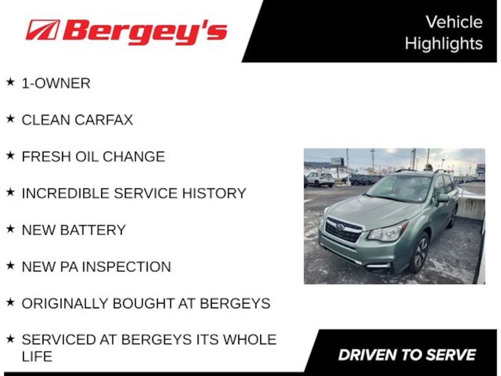 FORESTER WITH ONLY 85,000 MILES !! SPOTLESS INSIDE AND OUT! LOCAL CAR, ONE OWNER!CLEAN CARFAX, LOCAL TRADE IN,WELL CARED FOR!! FULLY SERVICED W/ NEW PA INSPECTION, OIL CHANGE, A FRESH DETAIL !!