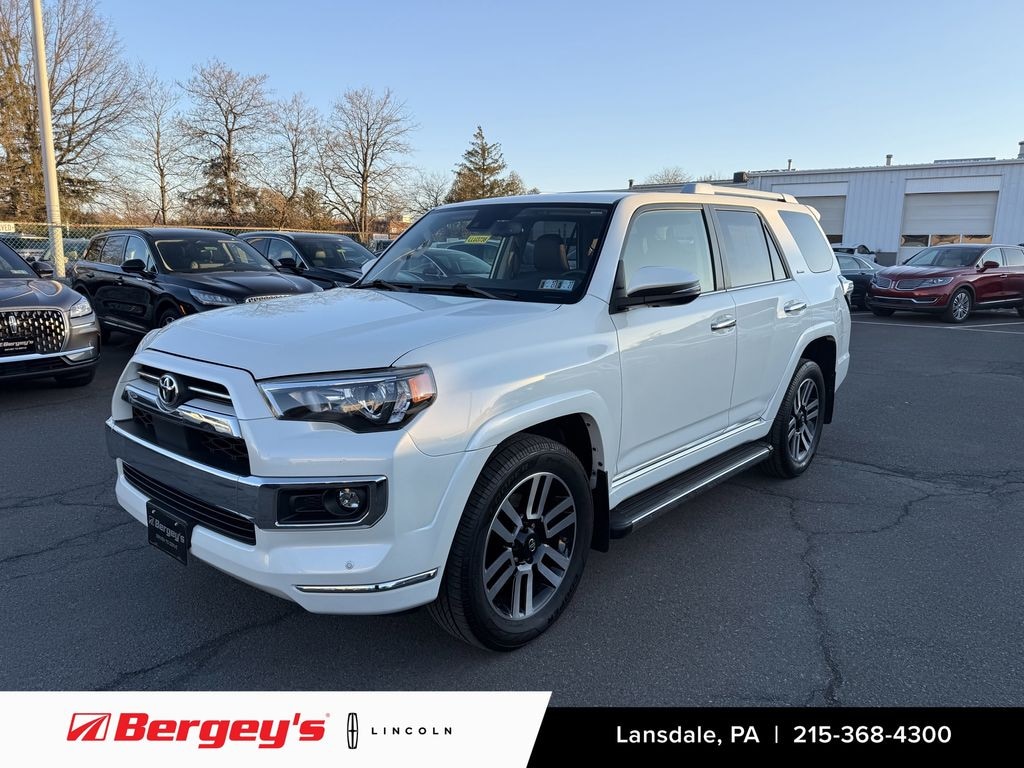 2021 TOYOTA 4RUNNER LIMITED 4.0L 4WD! ORIGINAL MSRP: $50,722.00! PREMIUM AUDIO WITH NAVIGATION, TOW HITCH RECEIVER, 20 WHEELS! PA State Inspection & First Oil Change At Bergey's! Blizzard Pearl Exterior, Black Interior. 4.0L DOHC 24-Valve V6 Engine With Dual Independent Variable Valve Timing With Intelligence, 5-Speed Automatic Transmission With Sequential Shift, Full-Time 4WD With Active TRAC And Locking Center Differential, Kinetic Dynamic Suspension System, Hill Start Assist Control, Downhill Assist Control, Trailer Sway Control, Tow Hitch Receiver With 7 And 4-Pin Connector, X-REAS Sport Enhancement Suspension, Smart Key System With Push Button Start, Remote Keyless Entry, Toyota Safety Sense P With Pre-Collision System With Pedestrian Detection, Lane Departure Alert, Dynamic Radar Cruise Control, Automatic High Beams, Front And Rear Parking Sonar, Backup Camera, LED Headlights With Automatic High Beam, LED Fog Lights, Power Tilt And Slide Moonroof With Sunshade, Heated And Ventilated Front Seats, Leather-Trimmed Seating Surfaces, Power Driver Seat With Memory, Power Front Passenger Seat, Dual-Zone Automatic Climate Control, Entune Premium Audio With Navigation And App Suite, 8-Inch Touchscreen Display, 15 JBL Speakers With Subwoofer And Amplifier, SiriusXM Satellite Radio Ready, HD Radio, Bluetooth Hands-Free Phone And Audio Streaming, USB And Auxiliary Input, Smart Device Integration, Power Rear Sliding Window, Privacy Glass, Running Boards, 20-Inch Alloy Wheels, Full-Size Spare Tire, Roof Rack With Cross Bars, Mudguards, Door Edge Guards, Paint Protection Film, All-Weather Floor Liners With Cargo Tray, Wheel Locks. Financing Available! Extended Service Contracts Available! Please Call Or Email To Confirm Vehicle Availability. Check Out Our Website For The Complimentary CARFAX Report!