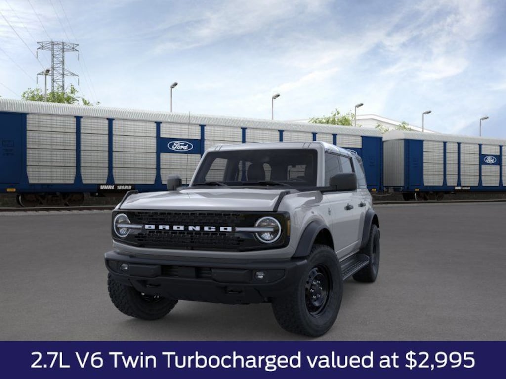 Avalanche Gray 2026 Ford Bronco Outer Banks 4WD 10-Speed Automatic 2.7L EcoBoost V6 18" Bright Machined Aluminum Wheels, 3.73 Axle Ratio, 360-Degree Camera, Adaptive Cruise Control, Black Appearance Package, Black Molded-in-Color Door Handles, Black Molded-in-Color Fender Flares, Black Molded-in-Color Sideview Mirror Caps, Black-Painted Molded-in-Color Grille, Equipment Group 314A Lux Package, Evasive Steering Assist, Ford Connectivity Package (1-Year Included), Front Parking Sensors, Heated Leather-Trimmed/Vinyl Bucket Seats, Radio: B&O Sound System by Bang and Olufsen, Sideview Mirrors.